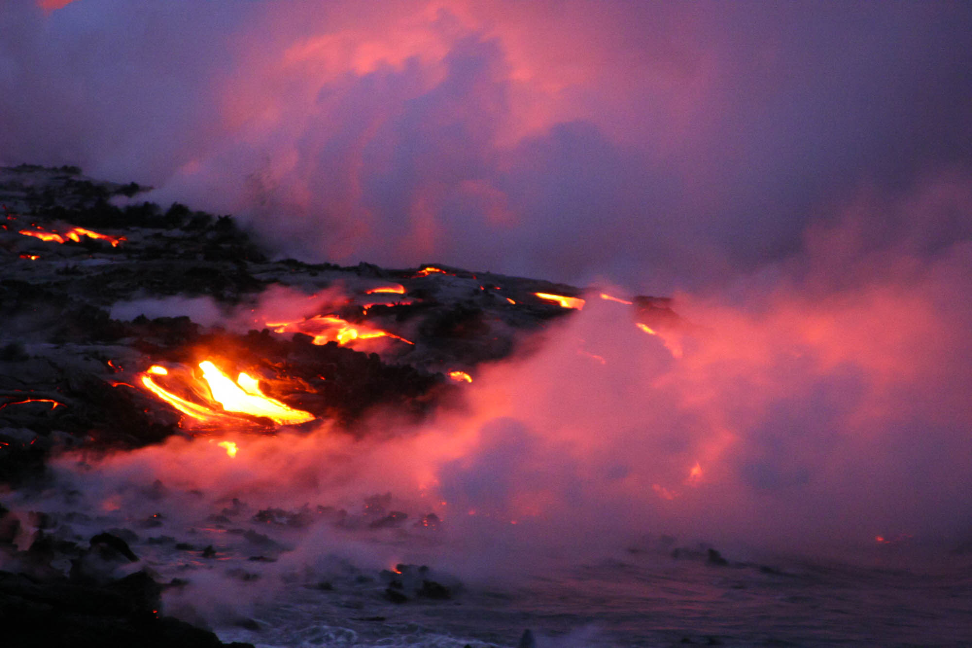 Spend a great Christmas holiday on the Big Island in Hawaii. Of all the islands it’s the one that offers the most variety. From the fantastic blue waters for diving, nice little beaches, great coffee (yeah, it’s important to me) to the ultimate experience, the volcanos. I only had a week, which was not enough to really take it all in, but more than enough to wet the appetite to go back. A day of diving to get to know some of the local fishes. Unfortunately, I didn’t plan well enough and didn’t get to do the Manta night dive. Well, next time for sure. But I did luck out on the volcano. It was quite active and after leaving the do-not-cross-line way behind (like a half mile or so), I got face-to-face with gleaming lava. Even being about 300 ft away from it, it was hot. And one of the most impressive sights I have ever seen.