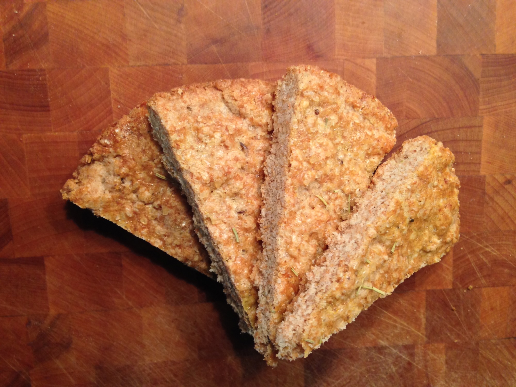 Reduce speed and add flour, caraway seeds and rosemary. Mix just enough to combine.