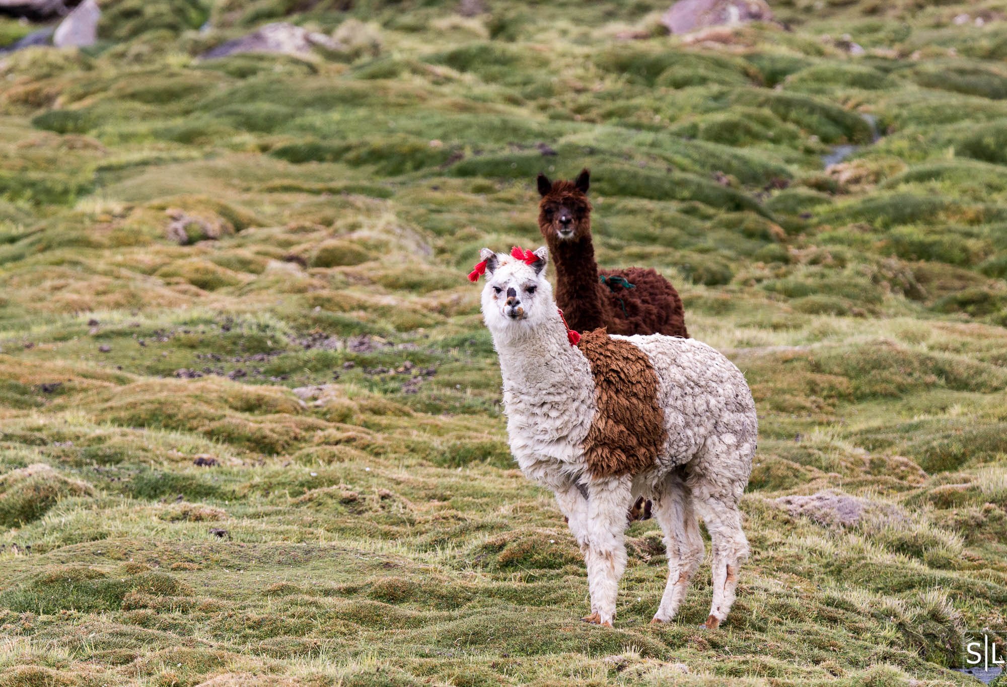 The next stop was the mostly deserted village of Parinacota. We were told that there are only 2 or 3 families left. It is known for its beautiful little church which we got to visit after tracking down the one last person with a key. As promised we found plenty of the animals around and virtually no humans. Pretty much the only people living in this region are people hearding Llamas and Alpacas. One interesting detail about the animals is how they are marked. Unlike cows or horses that are branded, the owners put colorful wool strings on their animals. I guess that is the smart thing to do as a branding would be invisible under all the wool. Besides, I never liked the idea of putting a hot iron to an animal.